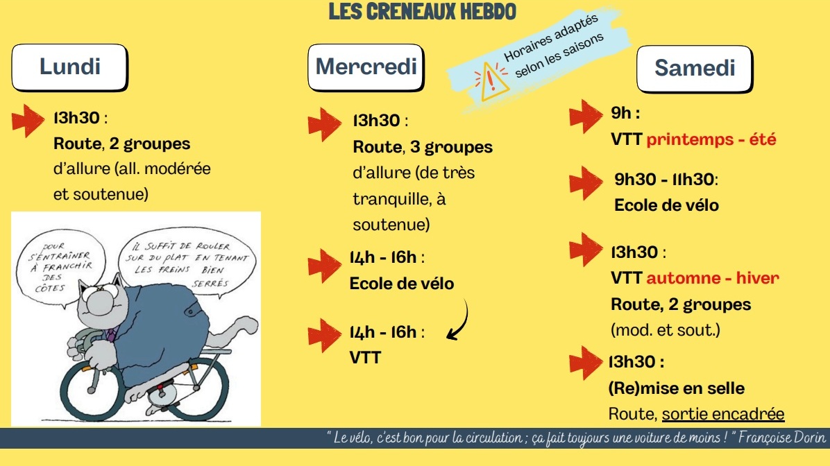 Vous trouverez ci dessous les créneaux de sortie club.